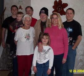In the picture above, Richard's parents are in the center left surrounded by their children and a few grand children. David is immediately behind his mother, Caroline is to the right of her dad, and Richard E is to the right of his sister, Caroline.